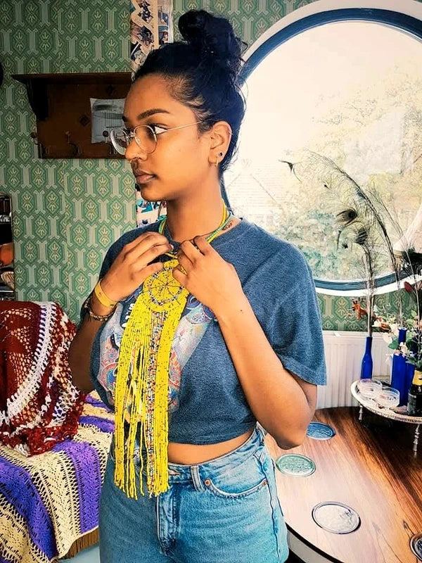 Brand New Beaded Fringe Pendant Necklace