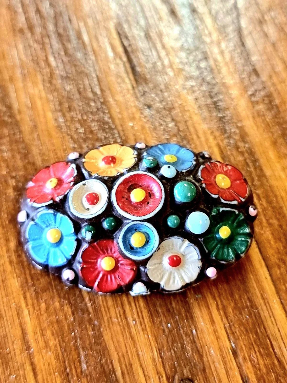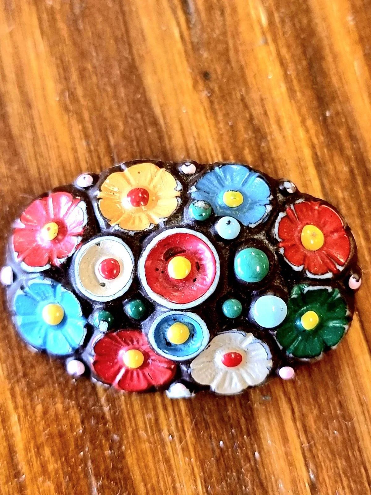 Vintage 80s Shell Painted Brooch