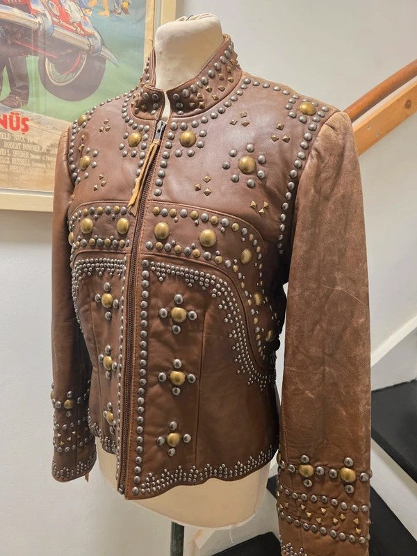 Vintage Double-D Ranch Texas Leather Gold Studded Jacket