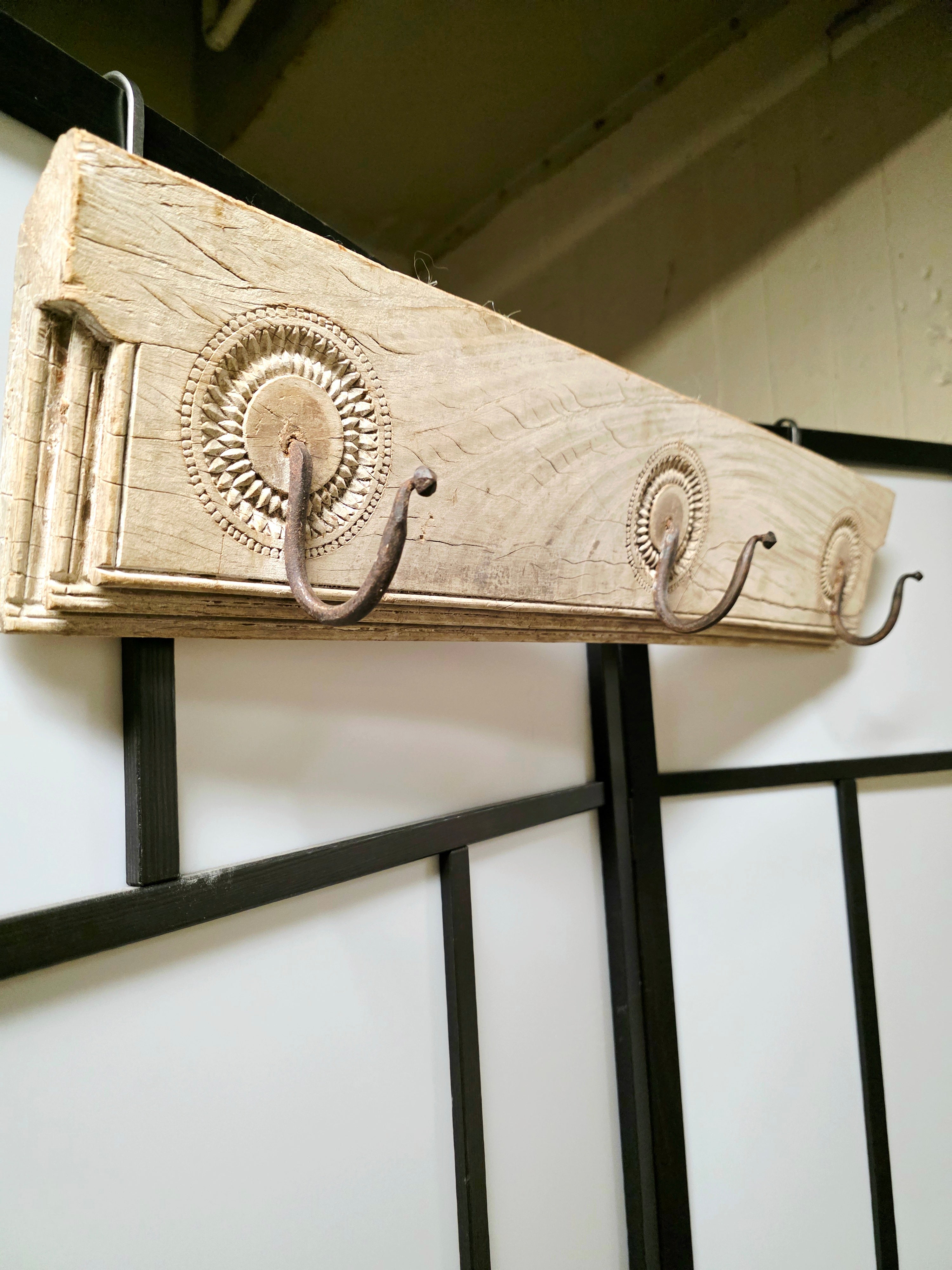 Unique Wooden Wall Coat Rack with wrought iron hooks