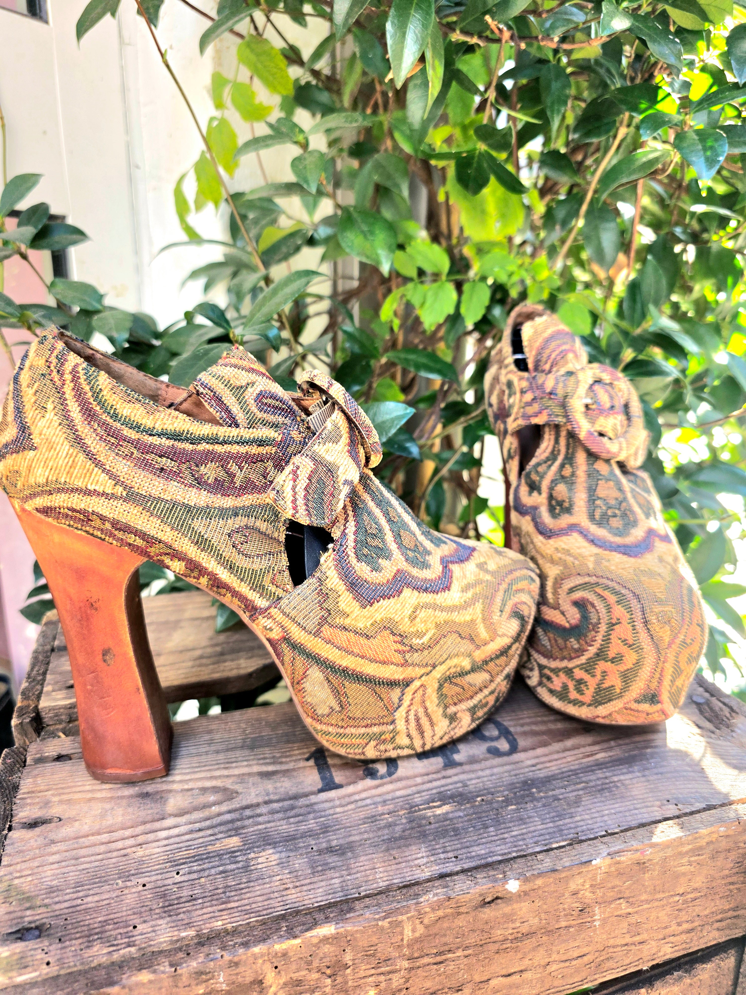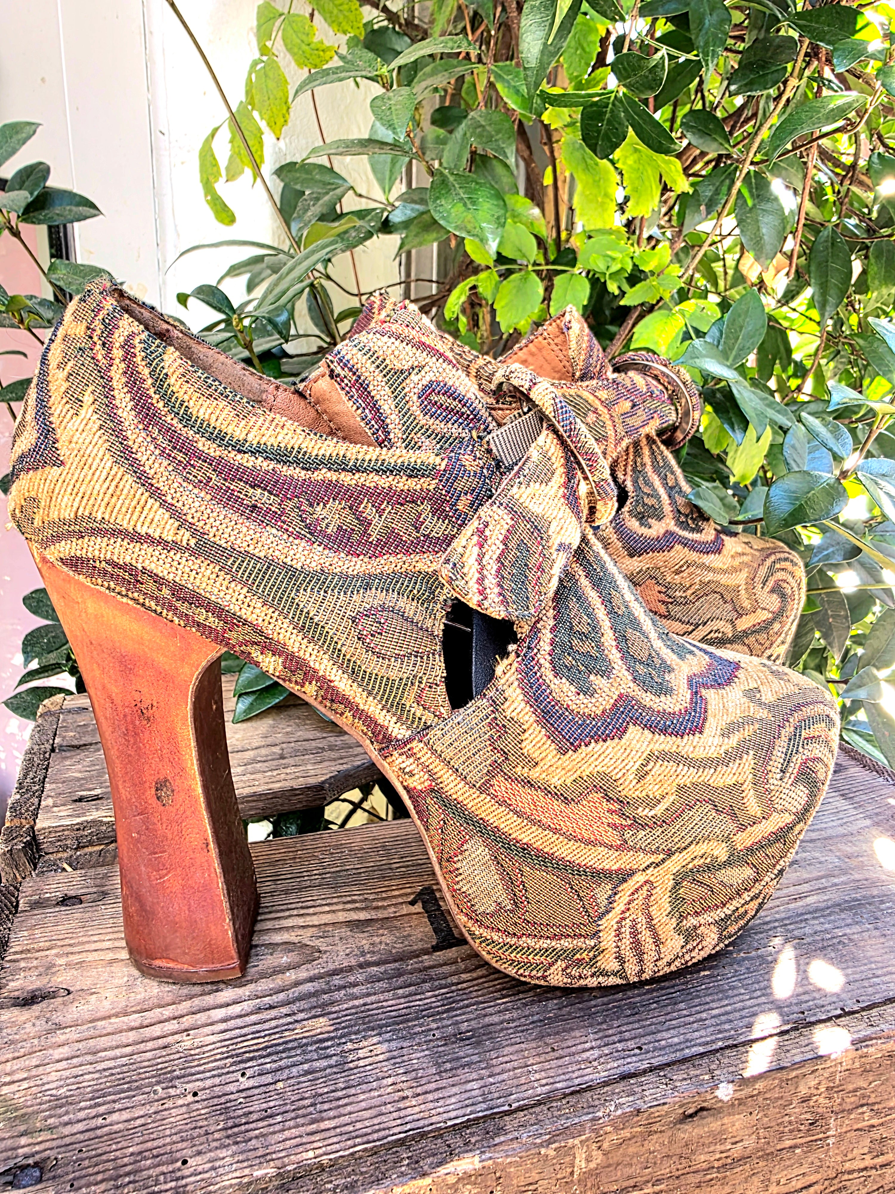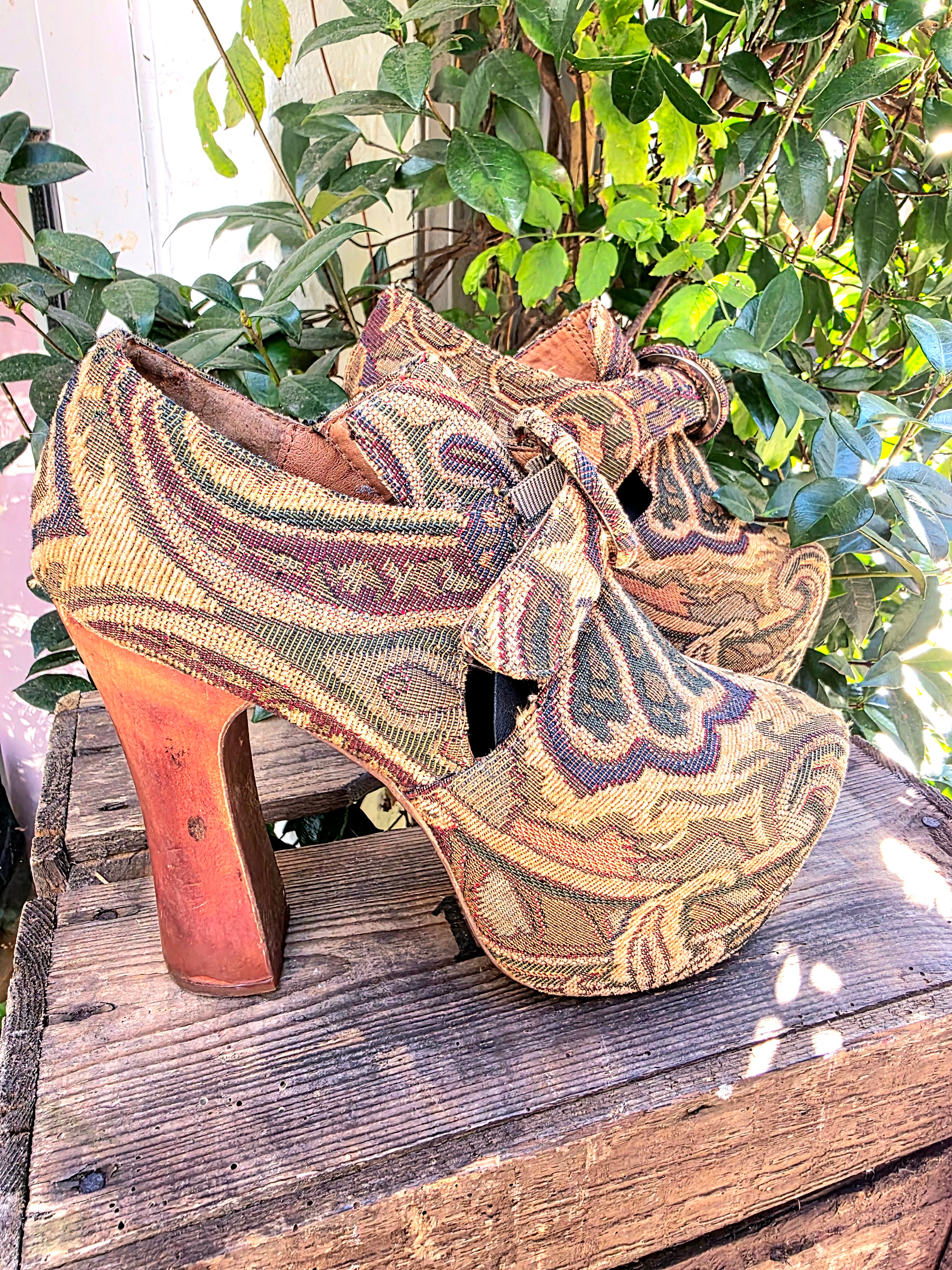 Vintage 90's / Y2K Jeffery Campbell Tapestry Platform Shoes