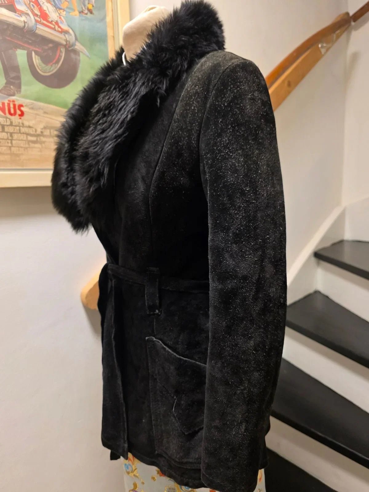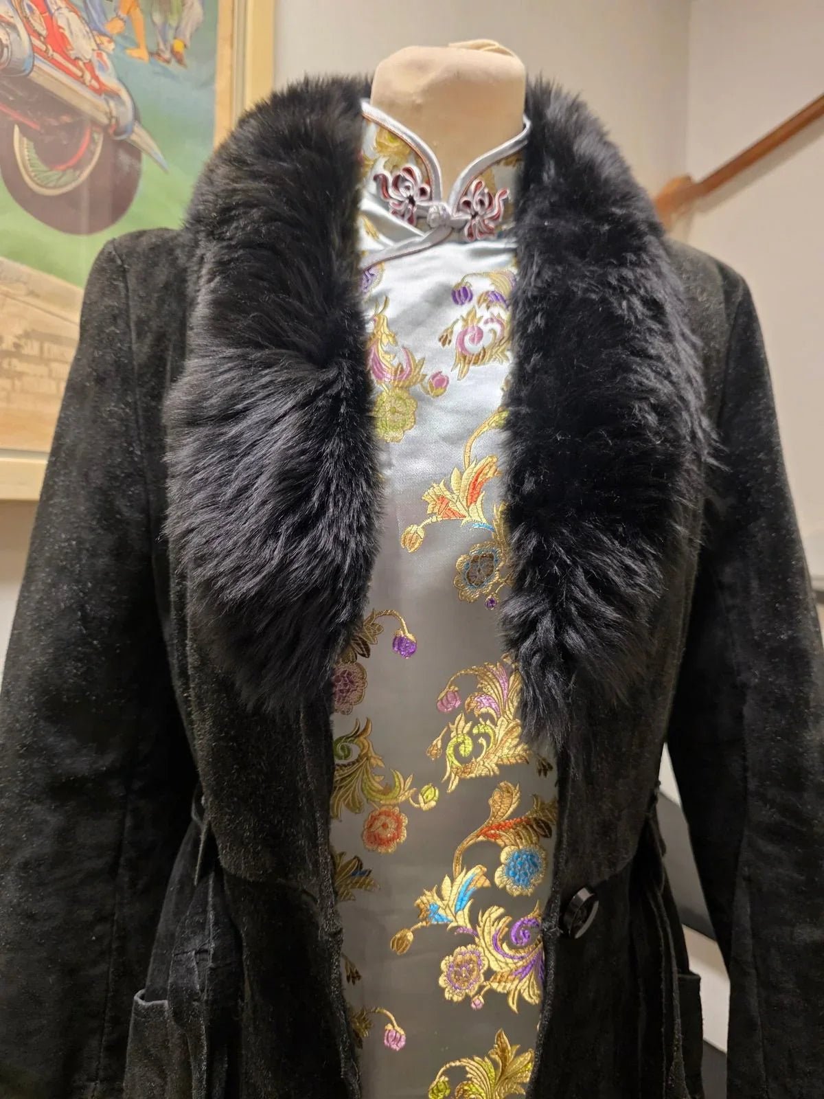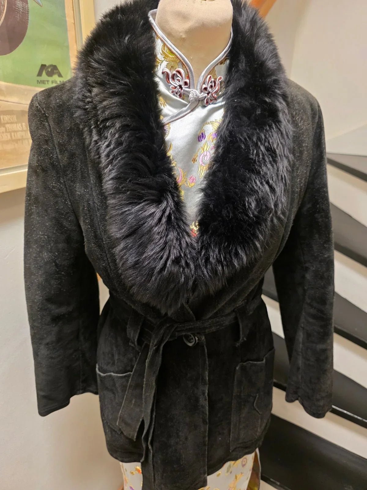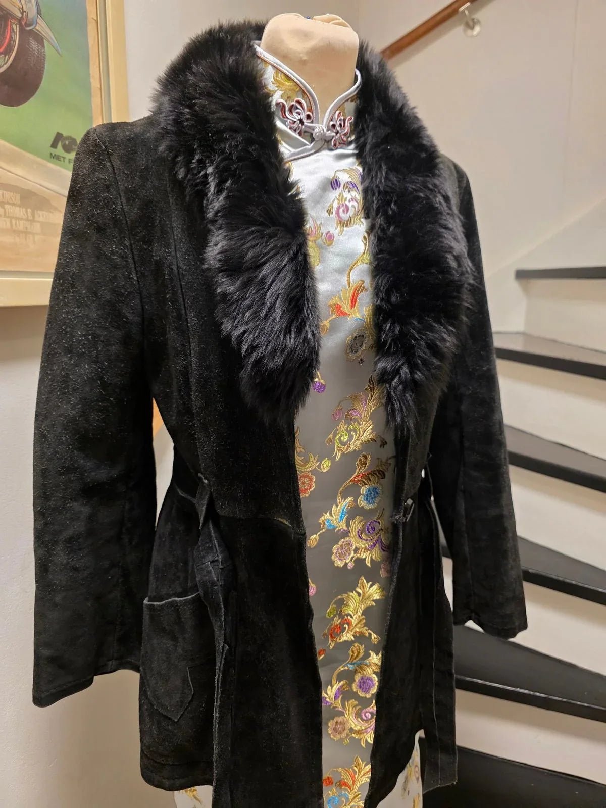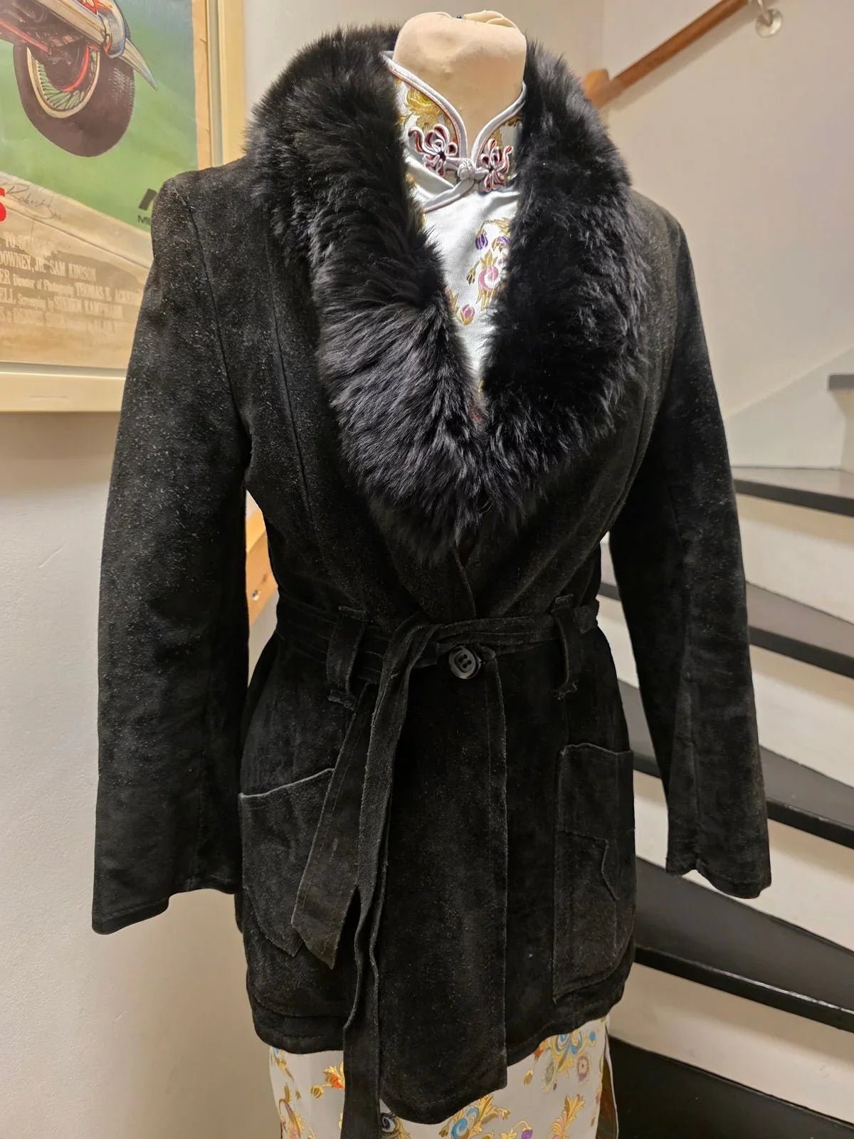 Vintage 70s Suede Leather Faux Fux Coat