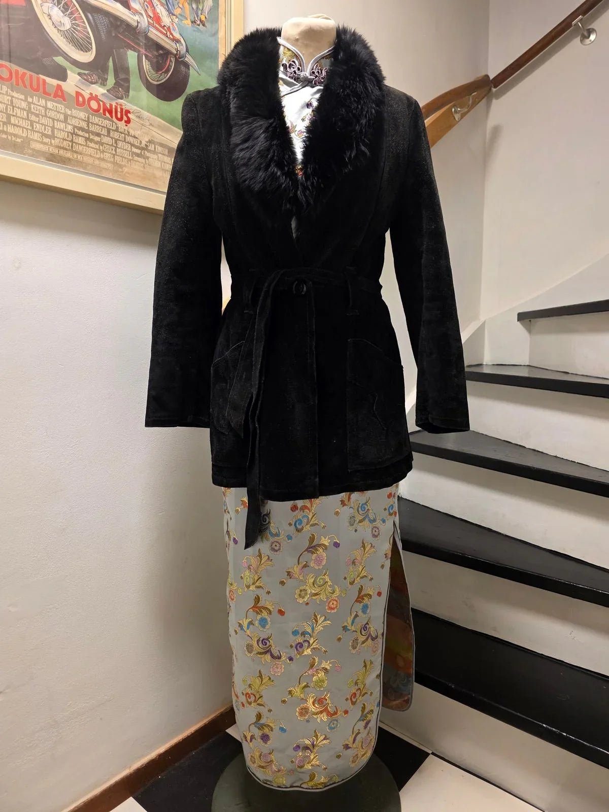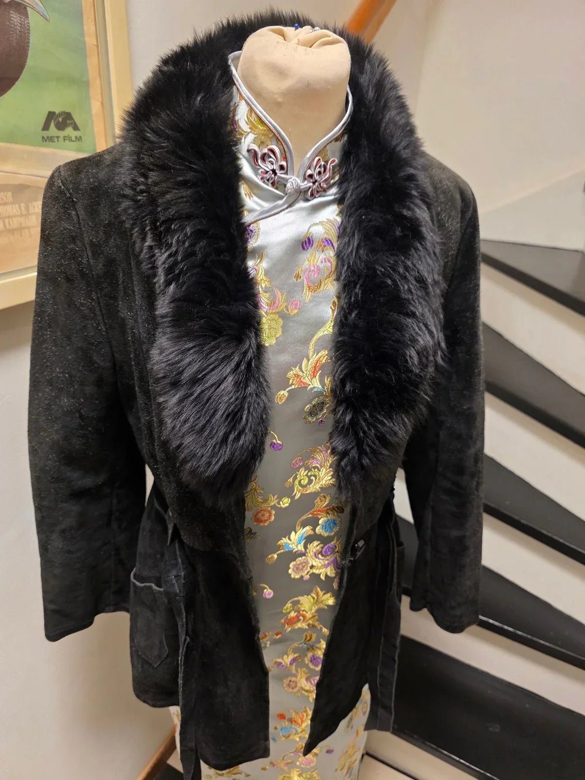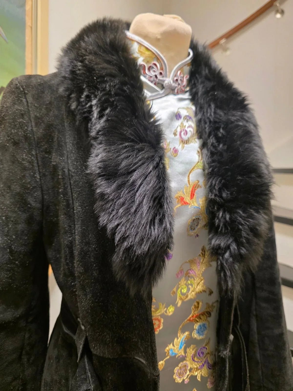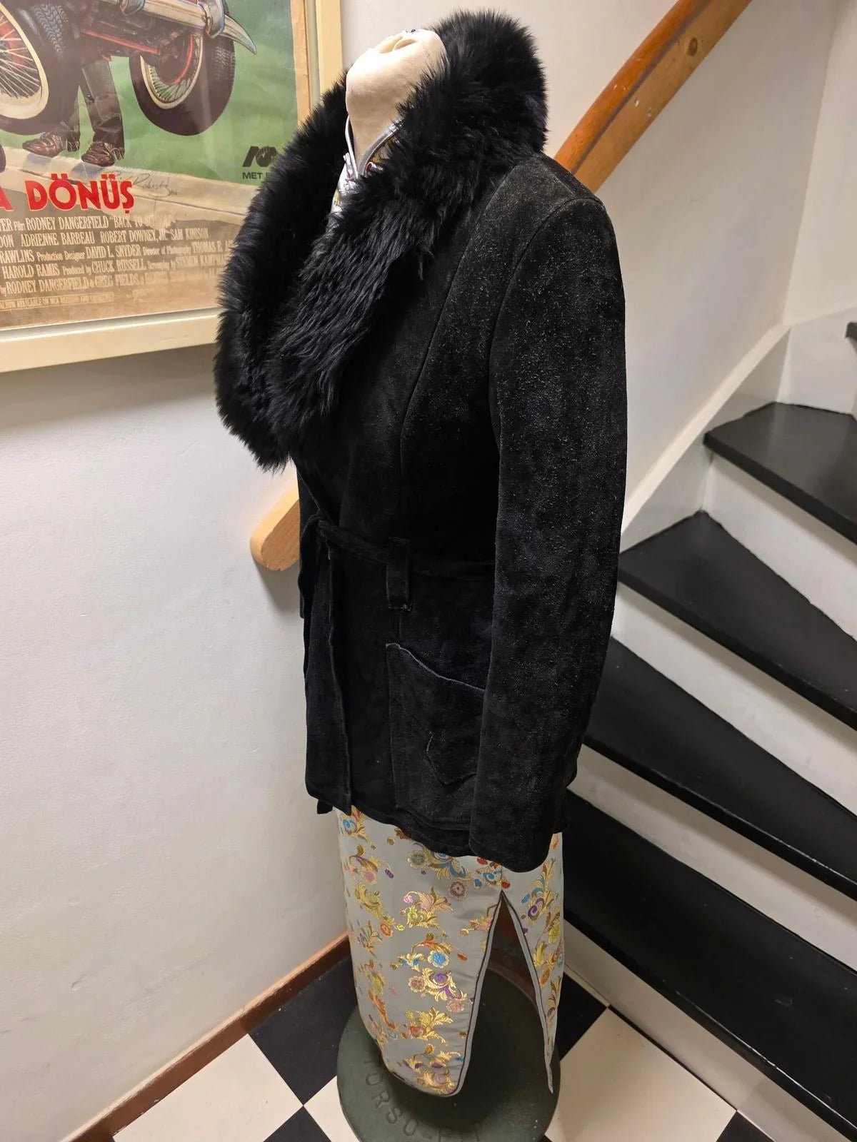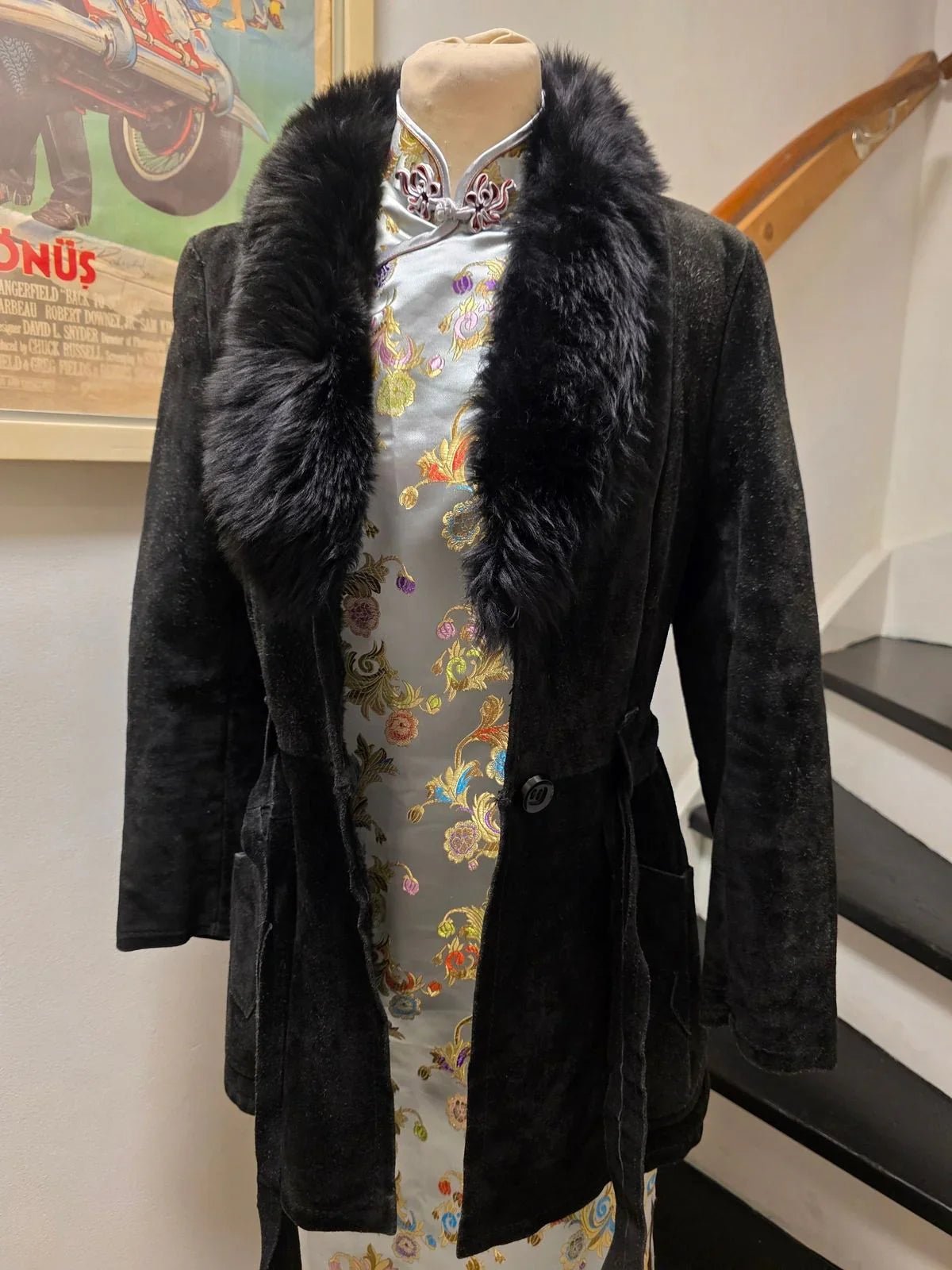 Vintage 70s Suede Leather Faux Fux Coat