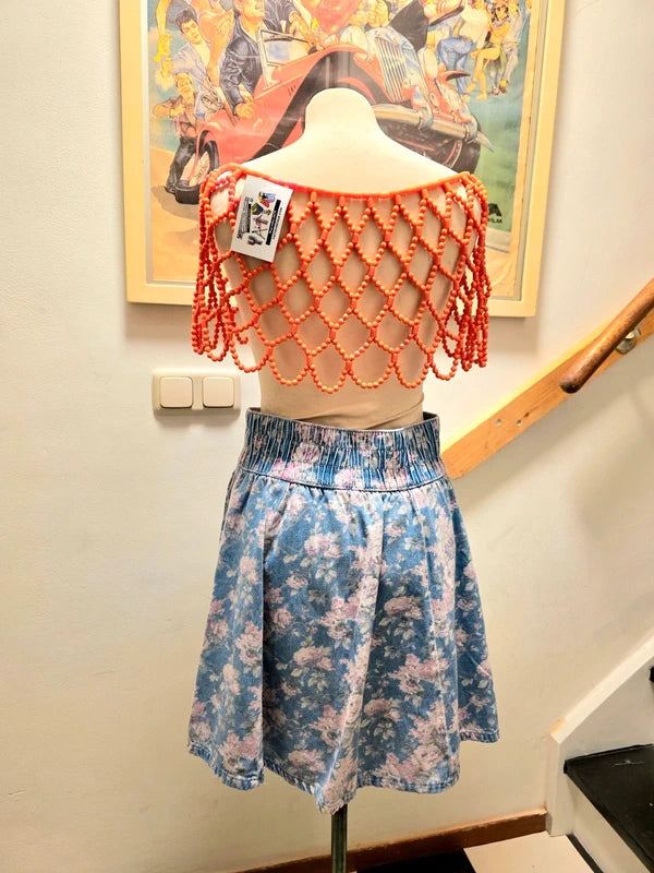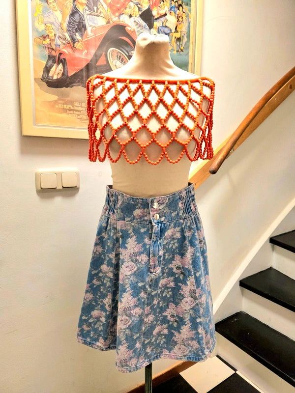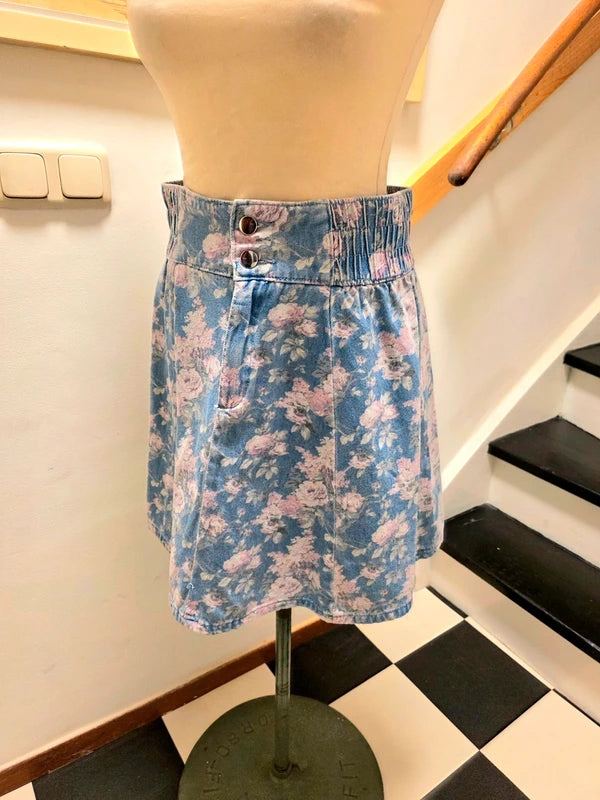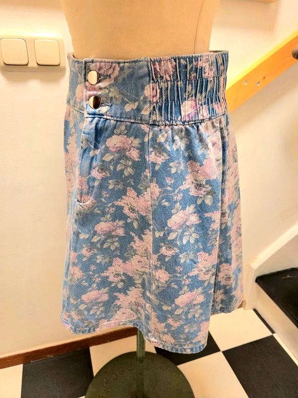 Vintage 1980's Floral Denim Skirt